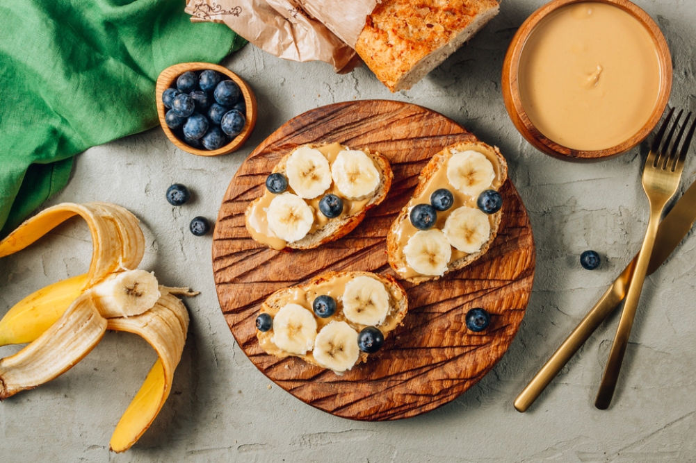 Ξεκινήστε τη μέρα σας αλείφοντας βούτυρο ξηρών καρπών σε τοστ ολικής άλεσης για ένα γρήγορο και ικανοποιητικό πρωινό. Μπορείτε επίσης να προσθέσετε κομμένες μπανάνες ή μούρα για επιπλέον γεύση και θρεπτικά συστατικά.