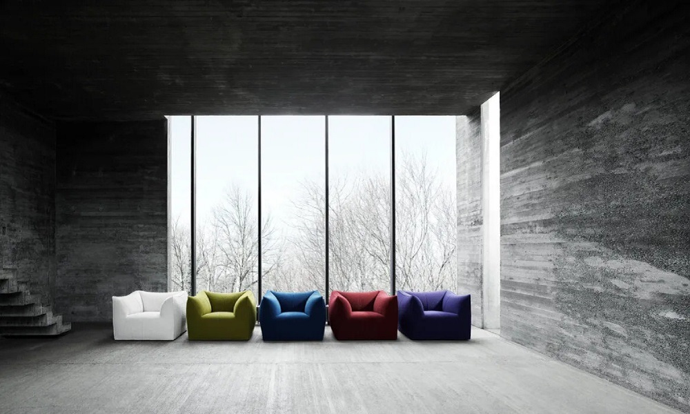 Το Desert One House στο Palm Springs της Καλιφόρνια, σχεδιασμένο από τον Jim Jennings AIA το 2005, αποτέλεσε το ιδανικό, γεωμετρικό και μονοχρωματικό αρχιτεκτονικό σκηνικό. Η αισθητική αυτού του στυλάτου σπιτιού των μέσων του αιώνα, με τις καθαρές γραμμές, την επίπεδη οροφή, τους πανύψηλους τσιμεντένιους τοίχους και τις συρόμενες γυάλινες πόρτες, αναδεικνύει τη μαλακή φύση της πολυθρόνας Le Bambole και του τριθέσιου καναπέ Granbambola.