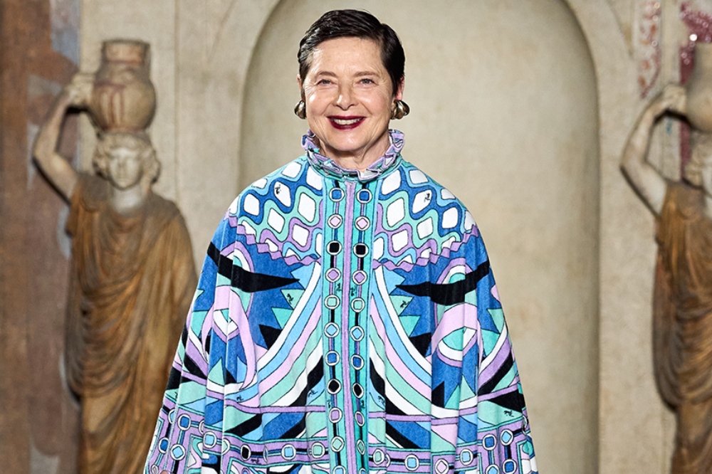 Τα πολύχρωμα μοτίβα-εμπνευσμένα από την ανεμελιά της Μεσογείου, για την οποία φημίζεται το brand– δεν ήταν τα μόνα που έκλεψαν την παράσταση στο show της Pucci. Ακολουθώντας το όραμα της Miceli, ο οίκος ολοκλήρωσε το ανοιξιάτικο show του με μία από τις πιο εμβληματικές προσωπικότητες του κινηματογράφου. Η Isabella Rossellini έκλεισε την επίδειξη,.φέρνοντας το μεγαλείο των 90s στο Palazzo Altemps.