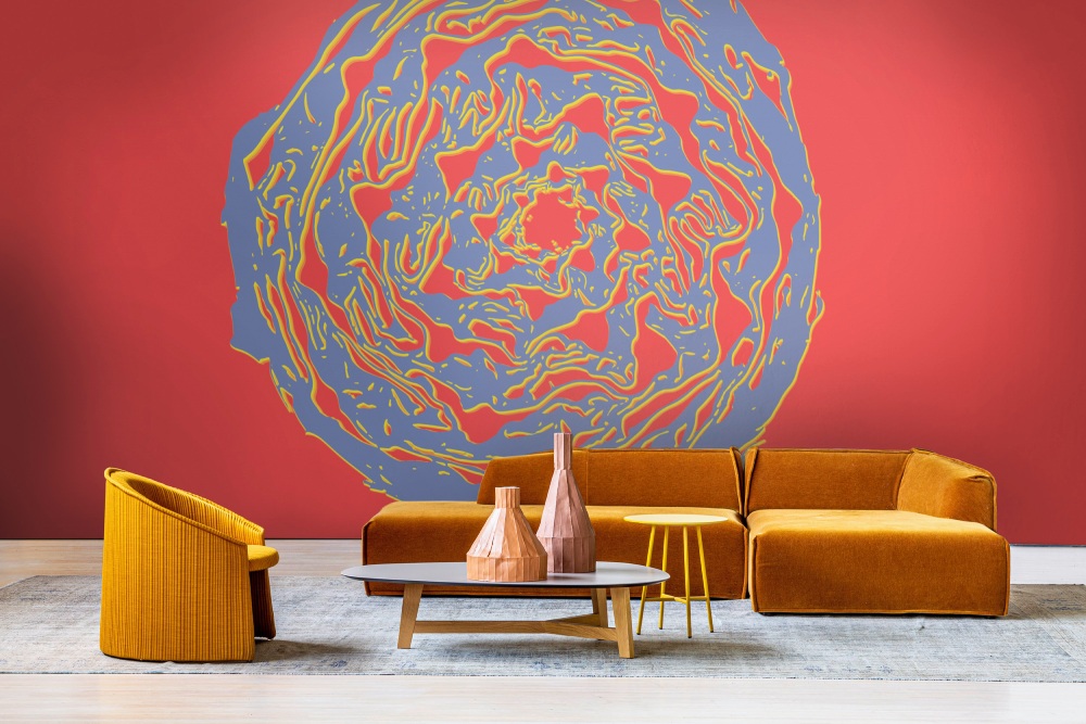 Aυτή η ταπετσαρία φέρνει την τέχνη στους τοίχους, εστιάζοντας σε ένα ρευστό, κυκλικό σχέδιο, συμβολικό της φύσης και του κόσμου, που κυριαρχεί στην επιφάνεια. Το διακοσμητικό μοτίβο προσφέρεται στη συνέχεια σε διαφορετικές χρωματικές παραλλαγές,.από ασπρόμαυρο έως πολύ φωτεινές αποχρώσεις,.καθιστώντας το μια αληθινή αφηρημένη και σύγχρονη εικόνα για χώρους διαβίωσης. Το ίδιο μοτίβο στη συνέχεια, με μικρότερο μέγεθος και επαναλαμβανόμενο στο μέσο της εκτύπωσης,.δημιουργεί μια πρόσθετη παραλλαγή γραφικών με ισχυρό χαρακτήρα.
