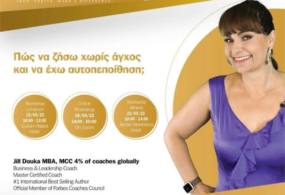 Το πρώτο workshop πραγματοποιήθηκε χθες στην Κύπρο και τώρα φτάνει στη χώρα μας. Την Τετάρτη θα γίνει το online workshop και στις 22 του μηνός θα γίνει το workshop στην Αθήνα, στο Airotel Alexandros Hotel. Η Global Academy of Coaching είναι η σχολή που έχει εδραιώσει το μοναδικό πτυχίο life coaching στην Ελλάδα και στην Κύπρο, στα Ελληνικά και στα Αγγλικά, με καθηγητές σε επίπεδο Master Certified Coach. Διοργανώνει τρία δυναμικά workshops με θέμα τη ζωή χωρίς άγχος και την απόκτηση αυτοπεποίθησης.