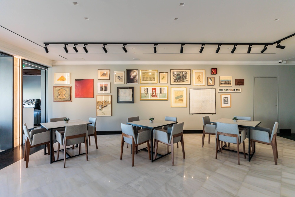 Ο χώρος είναι διαμορφωμένος με τέτοιον τρόπο, έτσι ώστε να αναμειγνύει μοντέρνα και κλασικά στοιχεία. Ο σχεδιασμός του εστιατορίου ήρθε να ταιριάξει απόλυτα με τη φιλοσοφία του Μουσείου. Οι παρεμβάσεις του γραφείου Q-Project, που ανέλαβε τη νέα διαμόρφωση του χώρου, ανασυνθέτουν τα βασικά στοιχεία του -χώρος εστίασης και μπαρ- ενώνοντας και διαχωρίζοντας ευρηματικά τον εσωτερικό χώρο.