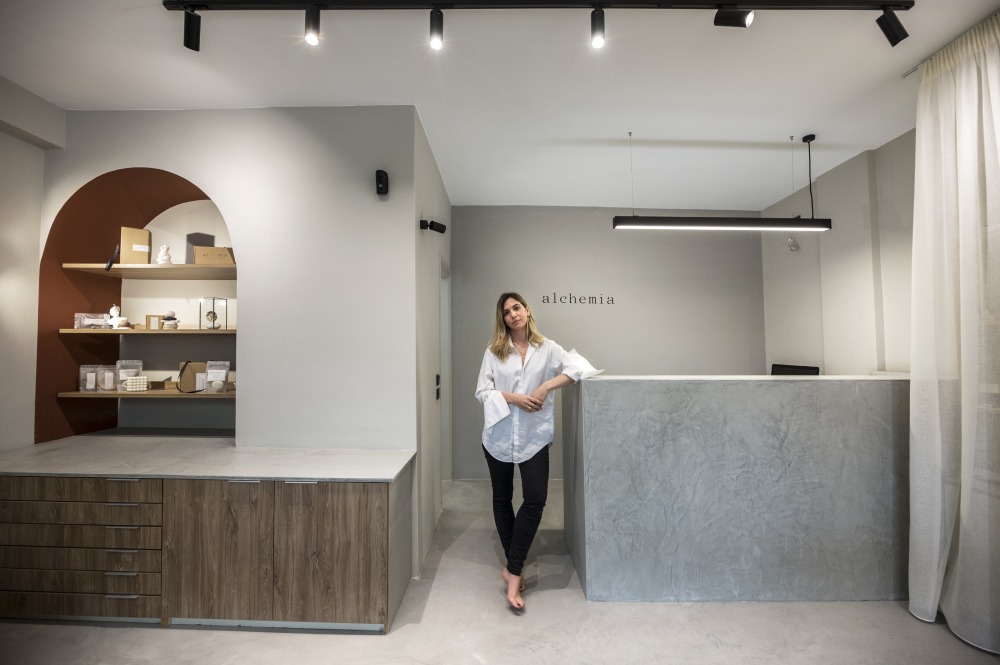 Το alchemia showroom είναι και το εργαστήριό μου. Εδώ “γεννιούνται” όλα! Μόλις το επιτρέψουν οι συνθήκες, θέλω να ξεκινήσω τελετουργικά για μικρές ομάδες των 4-5 ατόμων, να κάνουμε workshops, να δείχνω πώς μπορούν να γίνουν διαφορετικές συνταγές για τις μάσκες και να οργανώνω μικρά groups για face massage, με κάποιους συνεργάτες που κάνουν ayurveda. Για μένα, είναι ένας χώρος που δημιουργήσαμε μαζί με όλες τις γυναίκες που με στήριξαν. Κάθε μέρα που μπαίνω, νιώθω μεγάλη ευλογία που τα καταφέραμε, μέσα σε μια τόσο δύσκολη κατάσταση. Χαίρομαι πολύ που πλέον μπορώ να γνωρίζω προσωπικά τις γυναίκες που με έχουν στηρίξει. Παρότι προσπαθώ πολύ να είμαι διαθέσιμη και μέσω του eshop και μέσω των social media, για να απαντήσω σε οποιαδήποτε απορία μπορεί να υπάρχει, η προσωπική επαφή είναι πολύτιμη.