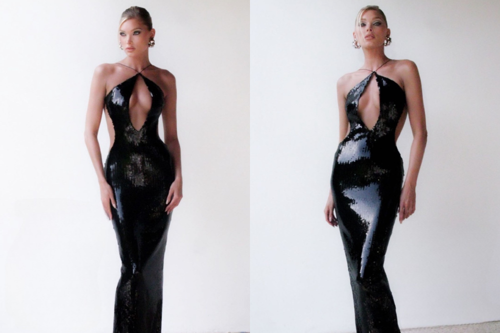 Η Elsa Hosk επέλεξε ένα μαύρο maxi φόρεμα με παγιέτα, το οποίο έφερε την υπογραφή του σχεδιαστή Eli Mizrahi, ιδιοκτήτη της Monot.
