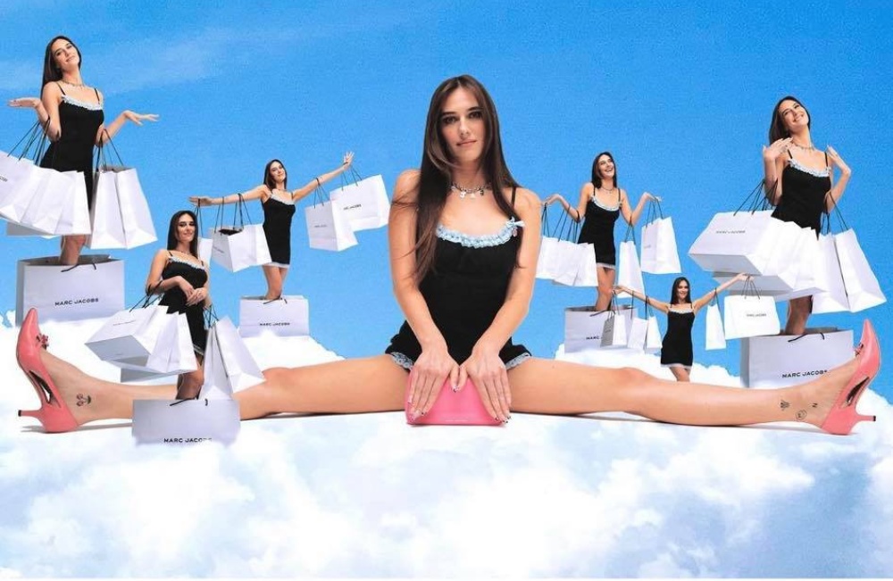 Γεμάτη παιχνιδιάρικα prints με έντονα χρώματα και 00s vibes, η σειρά ένδυσης περιλαμβάνει μπλουζάκι Y2K, shorts, μαύρο φόρεμα και βελούδινες φόρμες. Παστέλ χρώματα, ροζ φούσκες, prints με τον αγαπημένο σκύλο της Devon και κιτς μοτίβα κυριαρχούν στην ιδιαίτερη collection. Τα βλέμματα μαγνητίζει η ροζ τσάντα Marc με τις πολύχρωμες αλυσίδες- γράμματα.
