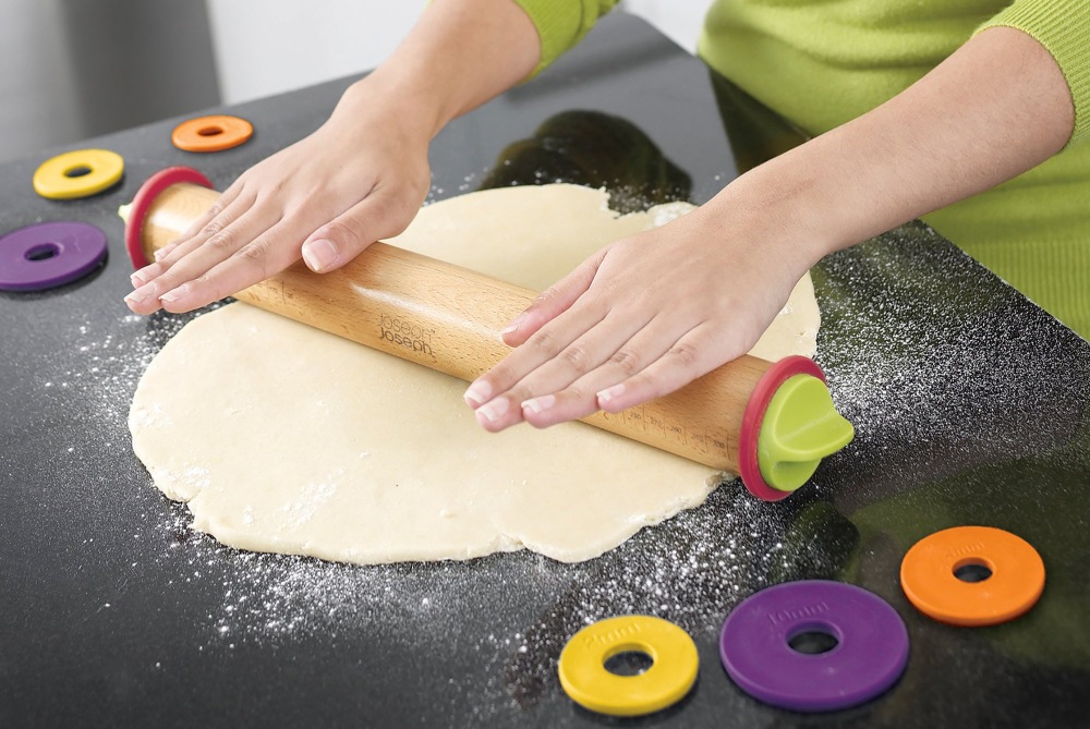 Ένας πρωτοποριακός πλάστης, που κάνει το άνοιγμα ζύμης… παιχνιδάκι! Χάρη στα 4 σετ δαχτυλιδιών του, το έξυπνο kitchen gadget ανυψώνει την επιφάνεια του πλάστη σε διαφορετικά ύψη, δημιουργώντας αντίστοιχα πάχη. Ταυτόχρονα, εξασφαλίζει ότι η ζύμη τυλίγεται ομοιόμορφα και στο ακριβές μέγεθος που απαιτείται.