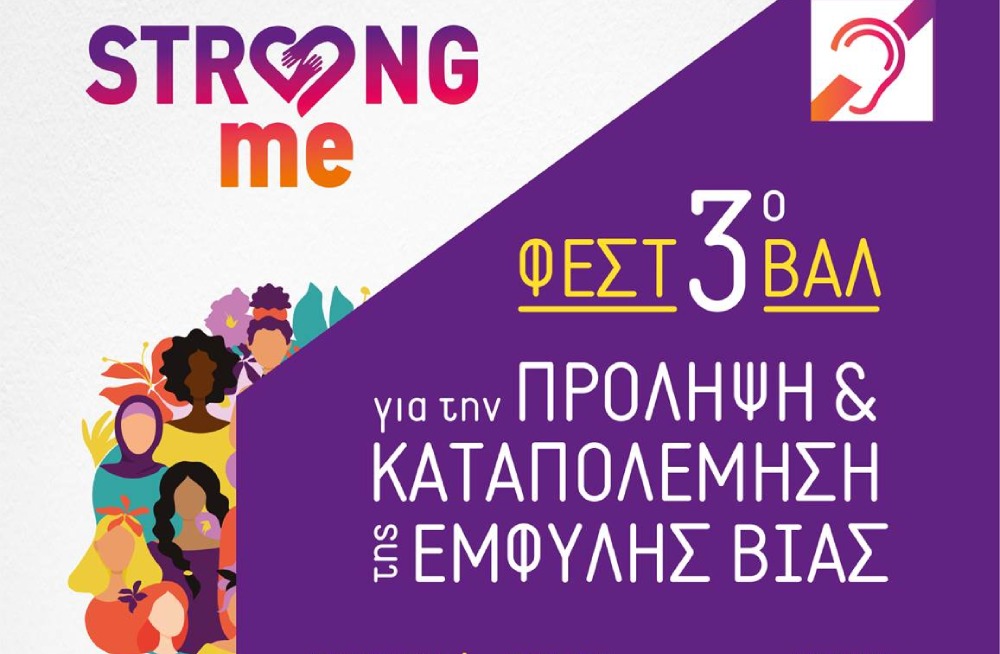 56 φορείς, οργανισμοί και σύλλογοι από όλη την Ελλάδα ενώνονται για ένα σημαντικό σκοπό. Το 3ο Φεστιβάλ Strong Me πιο δυνατό από ποτέ έχει ως στόχο την πρόληψη και την καταπολέμηση της έμφυλης βίας. Δημιουργεί μία ομάδα με προσωπικότητες των επιστημών, των τεχνών, του αθλητισμού και του ακτιβισμού για την πρόληψη και την καταπολέμηση της έμφυλης βίας για να “Κάνουμε τον φόβο μας δύναμη”. Το φεστιβάλ ξεκινά σήμερα και θα διαρκέσει μέχρι και την. Κυριακή 19 Μαΐου στο Σεράφειο του Δήμου Αθηναίων, προσφέροντας μία ποικιλία δράσεων και εκδηλώσεων για κάθε ηλικία και ενδιαφέρον.