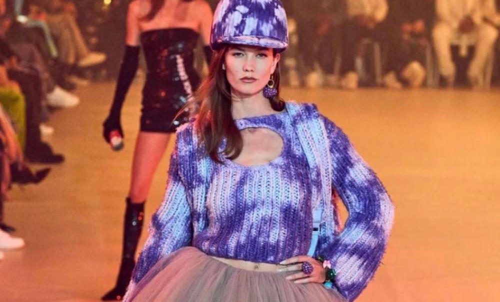 ⇒ Η Kaia Gerber στο Off-White show με μακριά νύχια σε μπλε απόχρωση.