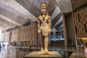 Το Grand Egyptian Museum άνοιξε επίσημα το 2025 και αποτελεί ένα από τα σημαντικότερα μουσεία παγκοσμίως αφιερωμένα στον αρχαίο αιγυπτιακό πολιτισμό. Από την είσοδο κιόλας, το άγαλμα του Ραμσή Β΄ εντυπωσιάζει με την κλίμακά του, ενώ στο εσωτερικό η περιήγηση εξελίσσεται σαν ένα ταξίδι στην ιστορία της Αιγύπτου. Το μουσείο οργανώνεται γύρω από μια μεγάλη κεντρική σκάλα και χωρίζεται σε δύο βασικές ενότητες: η μία παρουσιάζει χρονολογικά την εξέλιξη του πολιτισμού μέσα από 12 αίθουσες εκθεμάτων, ενώ η άλλη φιλοξενεί ολόκληρη τη συλλογή από τον τάφο του Τουταγχαμών, μαζί με τη διάσημη χρυσή νεκρική μάσκα, για πρώτη φορά συγκεντρωμένη στο σύνολό της. Δίπλα στο μουσείο βρίσκεται και το τελετουργικό πλοίο του Χέοπα, ένα εξαιρετικά καλοδιατηρημένο αρχαίο σκάφος ηλικίας περίπου 4.500 ετών, που συμπληρώνει μοναδικά την εμπειρία επίσκεψης.
