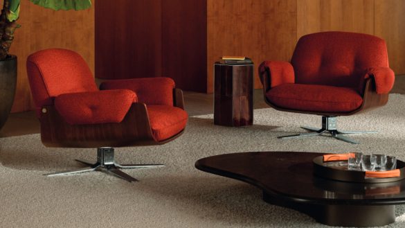 Η πολυθρόνα και το κάθισμα τραπεζαρίας Laurel, σχεδιασμένα από τον Giampiero Tagliaferri, αντλούν έμπνευση από τις…