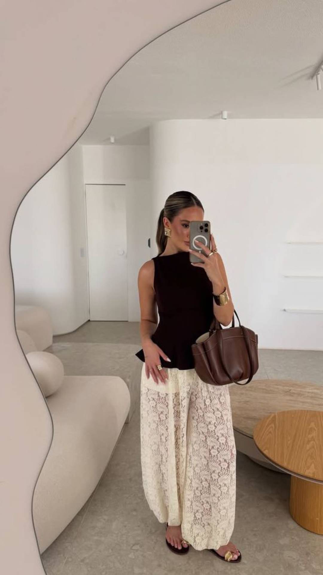 Για ένα casual look, συνδύασε τα balloon pants με ένα απλό T-shirt ή ένα fitted τοπ. Η ισορροπία είναι το κλειδί: επειδή το παντελόνι έχει όγκο, το πάνω μέρος καλό είναι να είναι πιο εφαρμοστό. Ολοκλήρωσε το outfit με ballerinas για άνεση όλη μέρα.