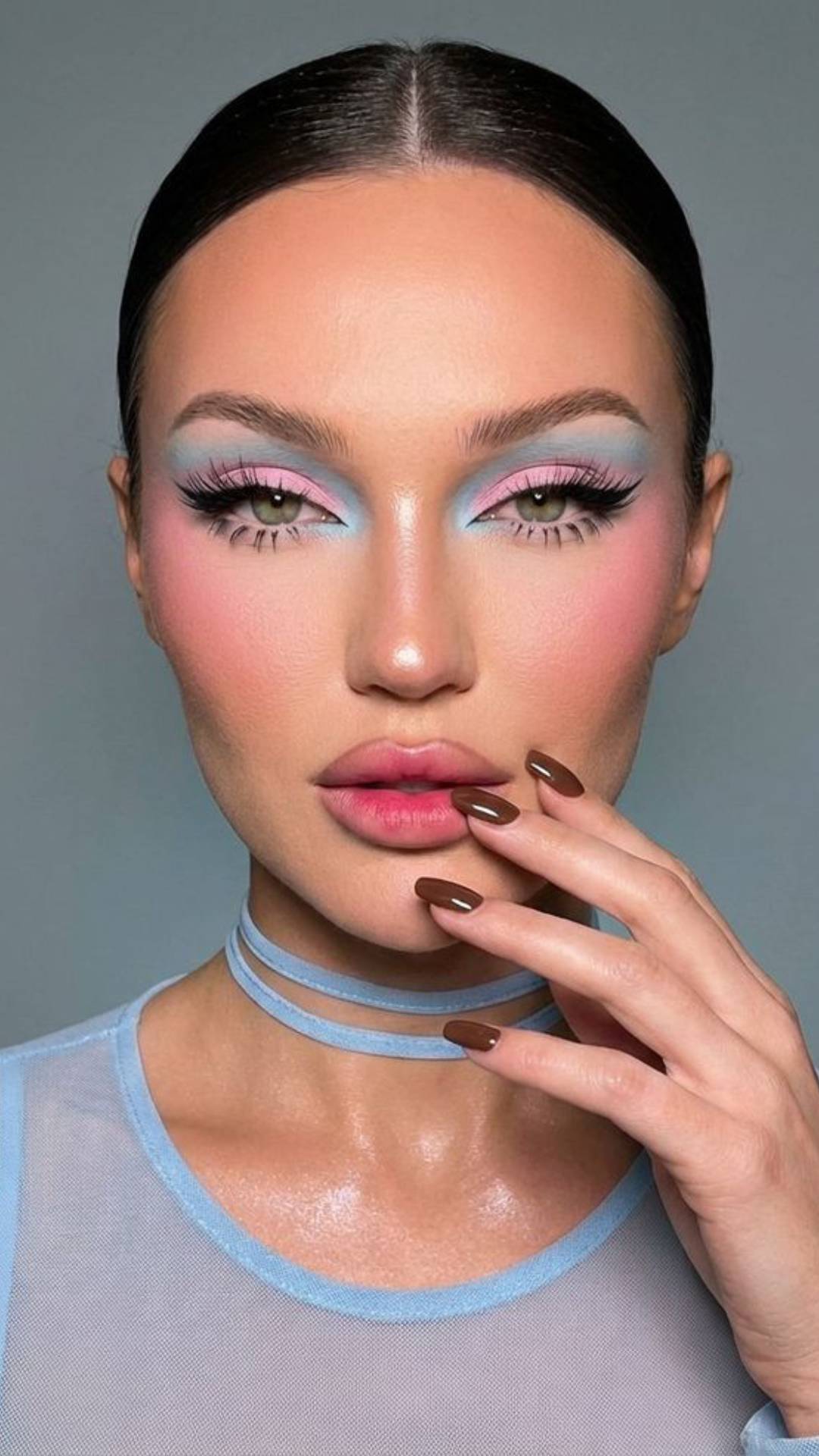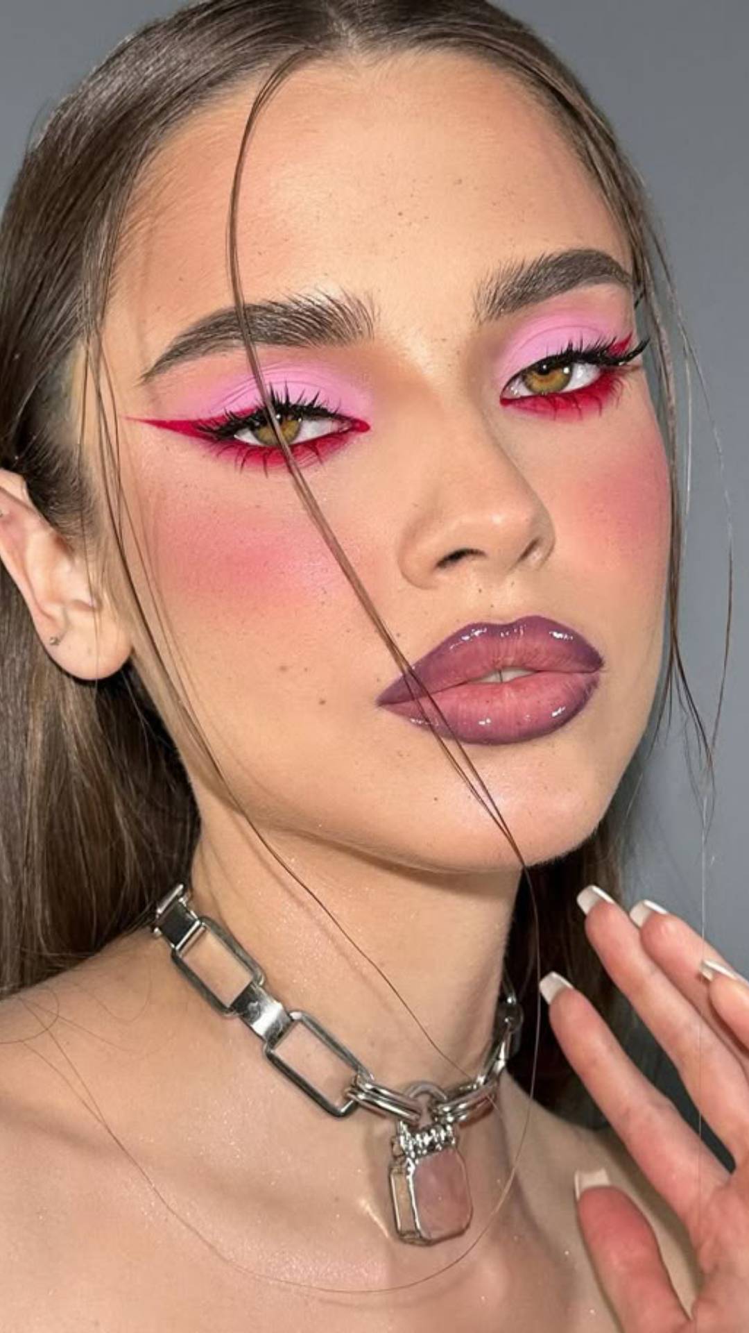 Το bold makeup ξεχωρίζει για τις έντονες σκιές ματιών, τα γραφικά eyeliner και τα statement χείλη. Αποχρώσεις όπως μπλε, μοβ, πράσινο και φούξια πρωταγωνιστούν, ενώ τα glossy φινιρίσματα και τα glitter στοιχεία προσθέτουν λάμψη και ένταση. Η τάση αυτή ενθαρρύνει τον πειραματισμό και δεν φοβάται τις αντιθέσεις, δημιουργώντας εντυπωσιακά και μοναδικά αποτελέσματα.