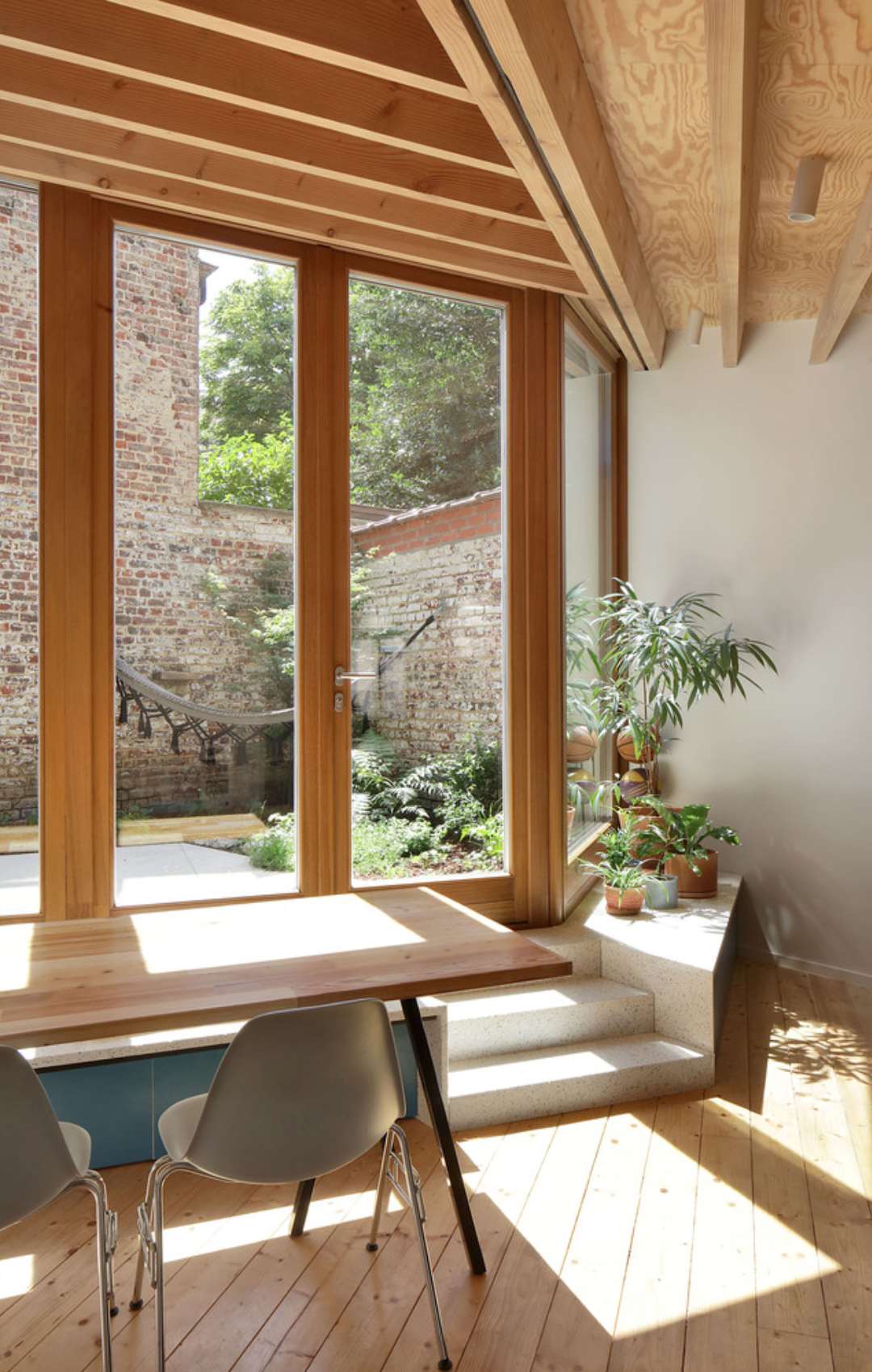 Το Butterfly Townhouse στις Βρυξέλλες του Atelier Tom Vanhee αποτελεί μια διακριτική αλλά ουσιαστική παρέμβαση σε ένα αστικό townhouse, με στόχο την επανασύνδεση του σπιτιού με το φως και τον κήπο. Η κατοικία, με υπόγειο, δύο επίπεδα και σοφίτα, επιβαρυνόταν στο πίσω μέρος από παλιές, κλειστές επεκτάσεις που ήταν κατασκευαστικά προβληματικές και περιόριζαν τον φυσικό φωτισμό και τη σχέση με τον υπαίθριο χώρο.