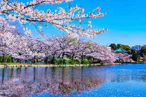 Το Ueno Park στο Τόκιο είναι από τα πιο δημοφιλή σημεία για να απολαύσει κανείς τα sakura, ειδικά αν είναι λάτρης των φωτογραφιών και των πικνίκ. Καθώς περπατά κανείς ανάμεσα στα χιλιάδες ανθισμένα δέντρα, σχηματίζεται μια εντυπωσιακή ροζ σήραγγα που προσφέρει μοναδικές στιγμές χαλάρωσης. Η ατμόσφαιρα γίνεται ακόμα πιο ζωντανή με ντόπιους και τουρίστες που κάνουν πικνίκ, ενώ γύρω από το πάρκο υπάρχουν καφετέριες και μικρά εστιατόρια για να απολαύσετε τοπικές γεύσεις και να συμπληρώσετε την εμπειρία του “hanami”.