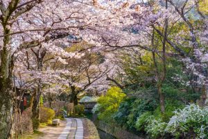 Η Philosopher’s Path στο Κιότο αποτελεί μια πιο ήρεμη και ρομαντική επιλογή για όσους θέλουν να απολαύσουν την ομορφιά των sakura με αργό ρυθμό. Ο περίπατος κατά μήκος του ήσυχου καναλιού, περικυκλωμένος από ανθισμένα δέντρα που δημιουργούν απαλές ροζ και λευκές αποχρώσεις, προσφέρει μια αίσθηση γαλήνης και σύνδεσης με τη φύση. Στα σημεία στάσης υπάρχουν μικρά καφέ και παραδοσιακά καταστήματα, όπου μπορείτε να απολαύσετε τσάι ή σνακ, ενώ κάθε στροφή του μονοπατιού προσφέρει νέες ευκαιρίες για εντυπωσιακές φωτογραφίες.