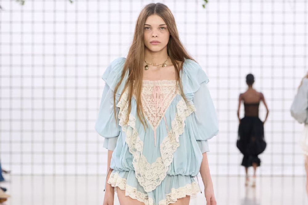 Στη συνέχεια, υπήρξαν τα δαντελωτά λουλούδια της Chemena Kamali. Εμπνευσμένα από.τη συλλογή SS του ’78, εμφανίστηκαν αρχικά ως maxi και στη συνέχεια συρρικνώθηκαν σε κοντά shorts. Το Bloomers, μια ιστορική σιλουέτα που συνδέθηκε με το δικαίωμα ψήφου των γυναικών, σηματοδότησε μια εποχή όπου οι γυναίκες δεν μπορούσαν να φορούν ό,τι ήθελαν. Ανασχεδιάζοντάς τα ως απαλά και αισθησιακά, η σχεδιάστρια δημιούργησε μια νέα αφήγηση γυναικείας ενδυνάμωσης.