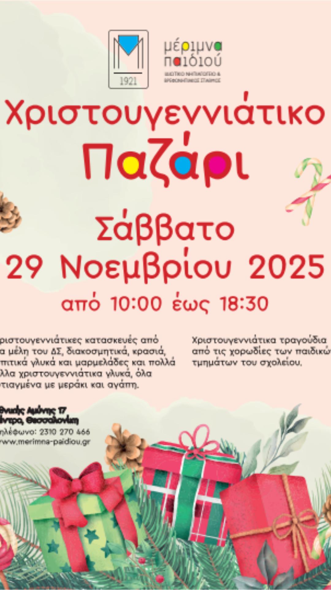 Χριστουγεννιάτικο bazaar από τη ΜΕΡΙΜΝΑ ΠΑΙΔΙΟΥ