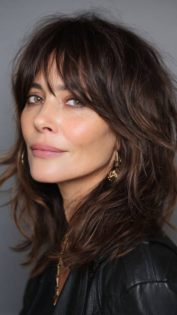 Το modern shag επιστρέφει δυναμικά, αλλά σε πιο απαλή και ρομαντική εκδοχή. Ξεχνάμε τις έντονες γωνίες και την υπερβολική υφή και υιοθετούμε πιο ελαφριές στρώσεις που αγκαλιάζουν το πρόσωπο. Οι curtain bangs και οι φιλαριστές άκρες χαρίζουν κίνηση και φυσικότητα, ενώ το αποτέλεσμα δείχνει ανεπιτήδευτο και μοντέρνο. Είναι ιδανικό για όσες θέλουν ένα κούρεμα με χαρακτήρα που αναδεικνύει τη φυσική υφή των μαλλιών. Με ένα απλό spray ή ένα χαλαρό φορμάρισμα, το look δείχνει ολοκληρωμένο χωρίς ιδιαίτερη προσπάθεια.
