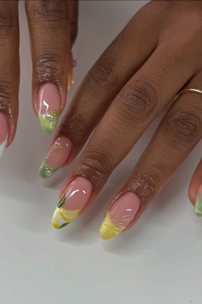Αν αγαπάς το all-time classic γαλλικό μανικιούρ, αλλά θέλεις να το δεις αλλιώς, αυτή είναι η στιγμή. Το French Citrus Twist φέρνει μια δόση καλοκαιρινής ανεμελιάς στις άκρες των νυχιών σου, παντρεύοντας τις απαλές καμπύλες του γαλλικού με φρέσκια lemon-lime αισθητική. Μιλάμε για λεμονί και πράσινες άκρες, ρεαλιστικές φέτες εσπεριδοειδών και διακριτικά άνθη λεμονιού που θυμίζουν τις πρώτες μέρες του Ιουνίου. Το αποτέλεσμα; Κομψό, φυσικό και ακαταμάχητα δροσερό. Ιδανικό για γάμους, city chic looks και νησιώτικες αποδράσεις, είναι η πιο elevated εκδοχή του citrus trend που μπορείς να δοκιμάσεις.