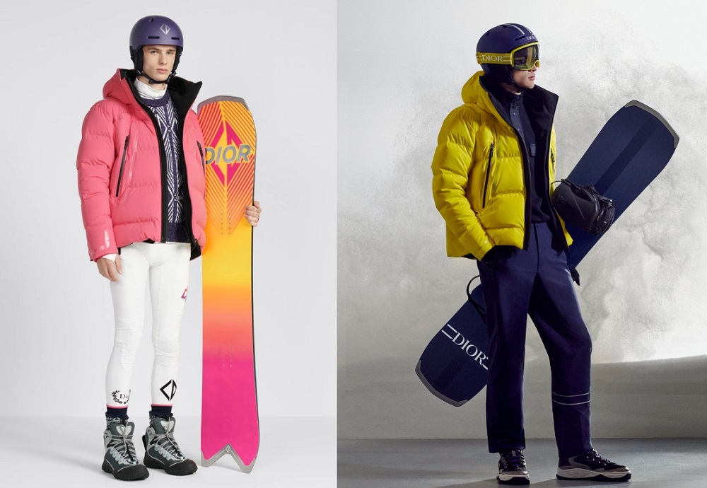 “Ζωντανές” αποχρώσεις του μπλε του κοβαλτίου, του φούξια, του μωβ και του μπεζ της άμμου δίνουν χαρακτήρα στα είδη εξοπλισμού σκι της Dior. Tέλος, ένα μοναδικό στο είδος του snowboard σχεδιασμένο από τη σουηδική μάρκα AK SKI ολοκληρώνει τη συλλογή, ενώ παρέχονται επίσης αθλητικά είδη πρώτης ανάγκης, όπως τσάντες μεταφοράς, μπουκάλια νερού και γυαλιά ηλίου.