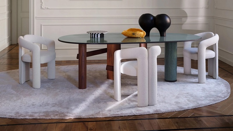 Η καρέκλα Dudet ήρθε για να συμπληρώσει το Sengu Table, σχεδιασμένο και αυτό από την Urquiola, με στόχο να φέρει ξανά την αισθητική των 70s στους εσωτερικούς χώρους.