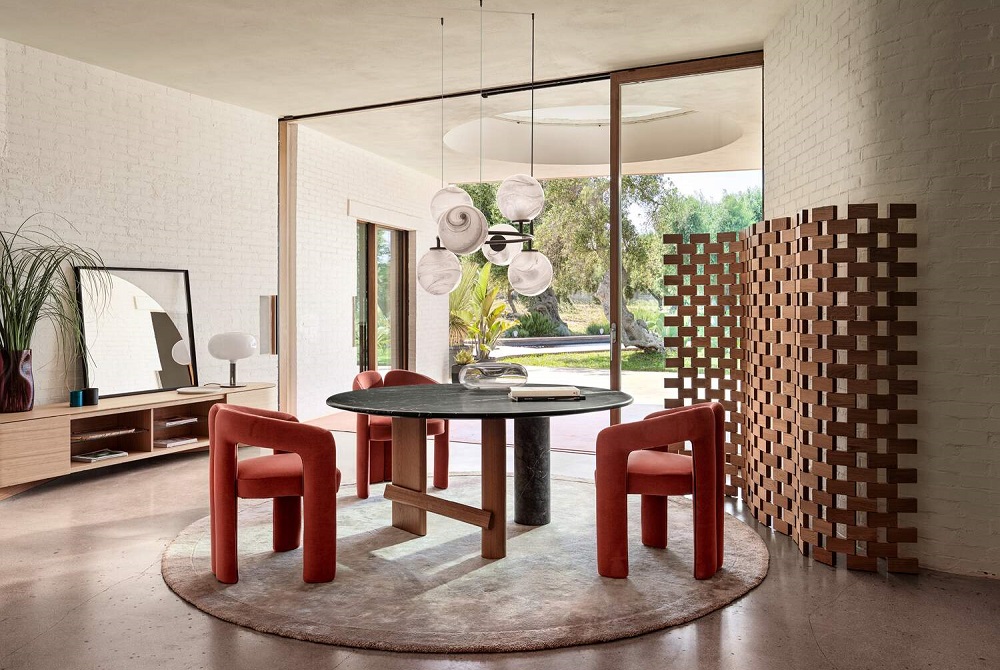 Η καρέκλα Dudet ήρθε για να συμπληρώσει το Sengu Table, σχεδιασμένο και αυτό από την Urquiola, με στόχο να φέρει ξανά την αισθητική των 70s στους εσωτερικούς χώρους.