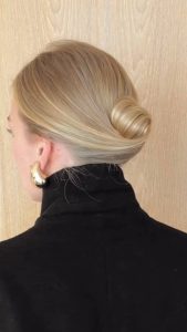 Ο λεγόμενος escargot ή croissant bun είναι ο απόλυτος γαλλικός χαμηλός κότσος. Τα μαλλιά στρίβονται γύρω από τον εαυτό τους, δημιουργώντας ένα σχήμα που θυμίζει σαλιγκάρι. Για πιο σύγχρονο αποτέλεσμα, μπορείς να χρησιμοποιήσεις ένα κομψό μεταλλικό αξεσουάρ ή μια french pin για σταθερότητα χωρίς να φαίνεται υπερβολικό. Το look είναι ιδανικό για γραφείο, ραντεβού ή ακόμη και formal περιστάσεις. Μην ισιώνεις υπερβολικά τα μαλλιά πριν τα πιάσεις. Λίγη φυσική υφή κάνει τον κότσο λιγότερο «στημένο».