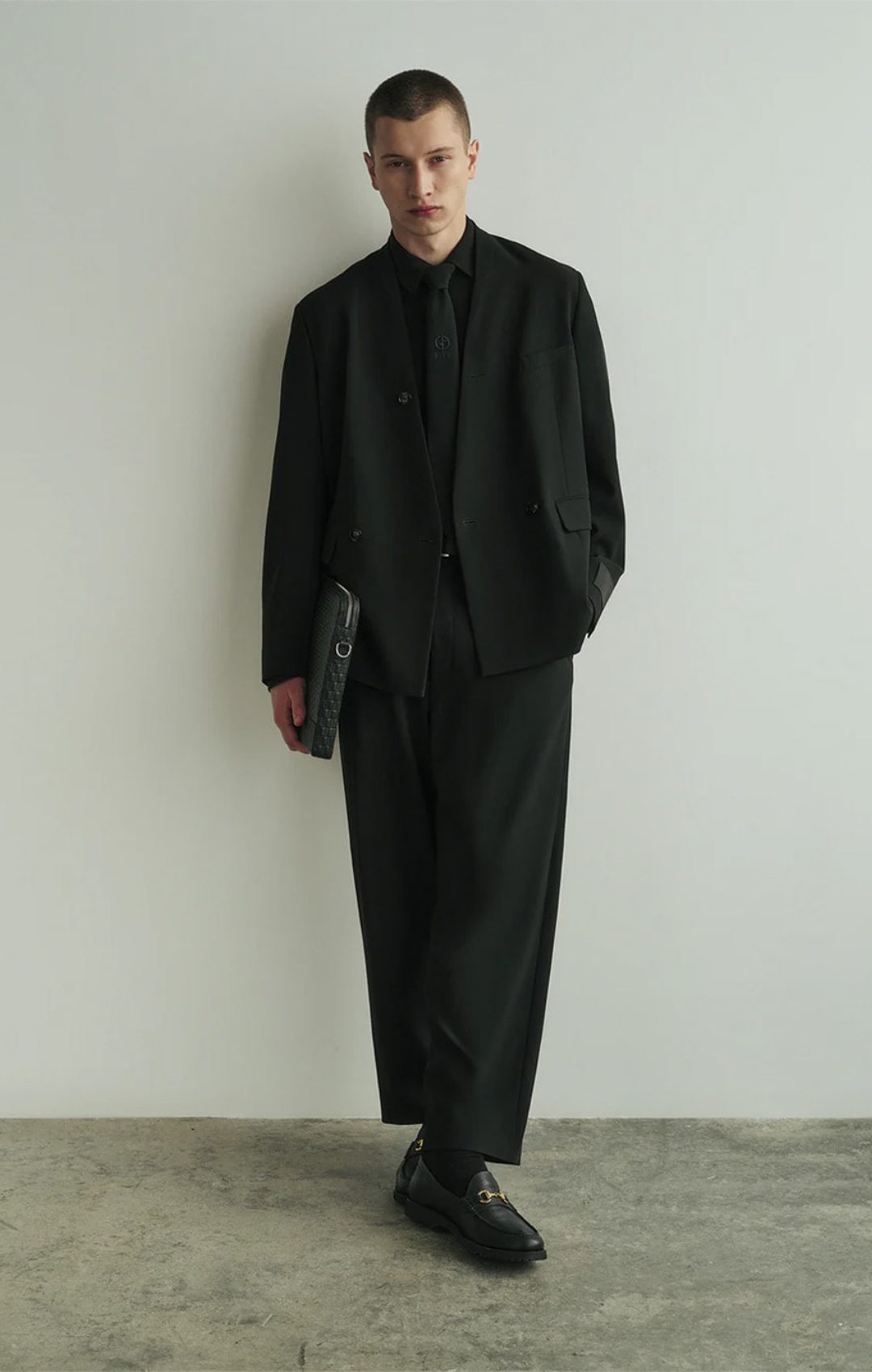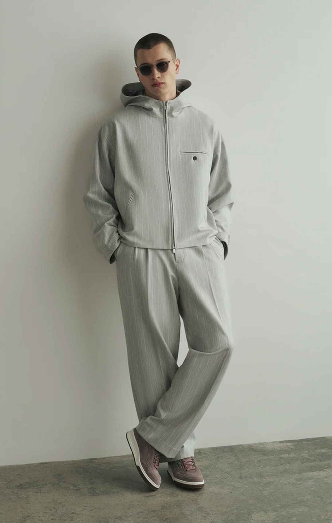 Ξεχωριστή θέση στη συλλογή κατέχουν επίσης το Giorgio Armani x Kith x &Kin Asymmetrical Zip Front Shirt και το Milano Crepe Entrepreneur Shirt, τα οποία αναδεικνύουν τον πειραματισμό με τις γραμμές και τις υφές. Παράλληλα, πιο χαλαρές προτάσεις όπως το &Kin for Kith Origins Tropical Wool Davenport Shirt και το Han Trouser ενσωματώνουν στοιχεία άνεσης, δημιουργώντας μια ισορροπία ανάμεσα στη δομημένη κομψότητα και τη σύγχρονη ανεπιτήδευτη αισθητική.