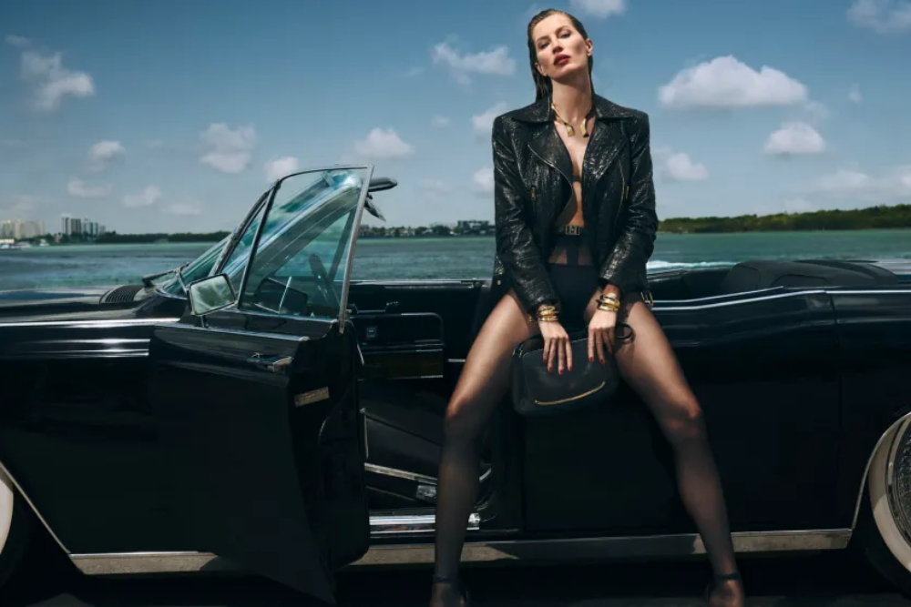 Φωτογραφημένη στο Μαϊάμι, σε μία από τις εικόνες η Bündchen ποζάρει μπροστά από ένα αυτοκίνητο Lincoln Continental της δεκαετίας του ’60, με την πόλη της Φλόριντα στο φόντο. Φοράει ένα από τα biker jackets της μάρκας σε απομίμηση κροκοδείλου, πάνω από μαύρες καλτσοδέτες και στιλέτο σανδάλια, αντικατοπτρίζοντας την ιδέα της Franchi για μία δυναμική και ταυτόχρονα γοητευτική γυναίκα.