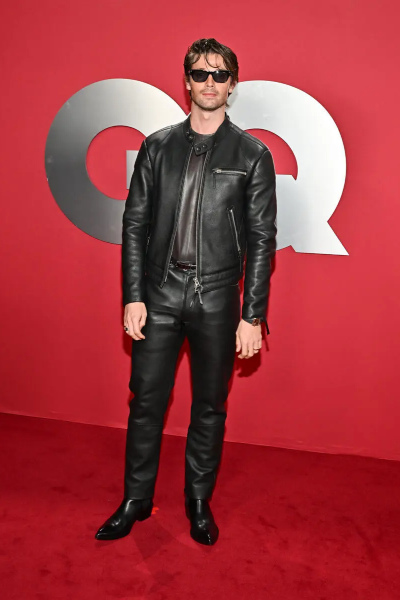 Ο Patrick Schwarzenegger φόρεσε ένα biker style δερμάτινο σετ Tom Ford, μαύρη απόχρωση και ολοκλήρωσε το look του με μαύρα γυαλιά ηλίου.