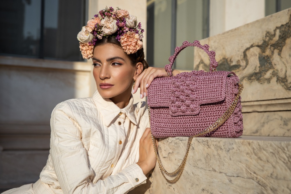 Η συλλεκτική χειροποίητη “Alma” διατίθεται σε ένα πανέμορφο dusty pink χρώμα.και πλαισιώνεται από χρυσή μεταλλική διπλή αλυσίδα, για να φοριέται τόσο στον ώμο, όσο και χιαστί. Το συγκεκριμένο design της τσάντας είναι ένα από τα πιο αντιπροσωπευτικά και παράλληλα. best-selling σχέδια του brand, “ντυμένο” πλέον στα ροζ για τον συγκεκριμένο καλό σκοπό.