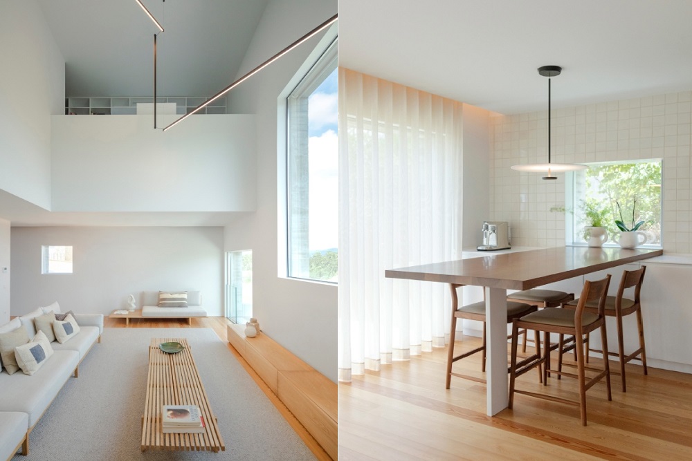 Το design studio Olivegrey σχεδίασε μία κομψό διώροφη κατοικία στην Πορτογαλία, με φωτεινό ενιαίο σαλόνι και εντυπωσιακά ανοίγματα από το δάπεδο μέχρι την οροφή. Με μία μινιμαλιστική αρχιτεκτονική προσέγγιση καθαρών μορφών, έφεραν τη ζεστασιά μέσα από απλές γραμμές, απαλά σχήματα και λείες υφές. Τα φωτιστικά της κατοικίας αποκτήθηκαν από τη Vibia και ολοκλήρωσαν με τον πιο stylish τρόπο το συνολικό σκηνικό.