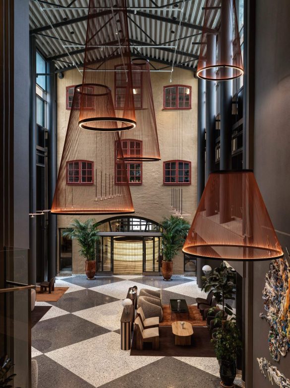 Ακολουθώντας τη φιλοσοφία των Nobis για διαχρονικό σχεδιασμό, η ομάδα της lead architect Helena Toresson προσέγγισε το έργο με λεπτότητα. Στους κοινόχρηστους χώρους, οι επεμβάσεις λειτούργησαν περισσότερο ως επιμέλεια παρά ως ανατροπή. Διατηρήθηκαν όσα στοιχεία της δεκαετίας του ’90 είχαν χαρακτήρα ή μια κάποτε παρεξηγημένη ιδιομορφία, όμως μεταμορφώθηκαν μέσα από πιο σκούρους τόνους, νέες υφές και έναν επιδέξιο χειρισμό του φωτός.