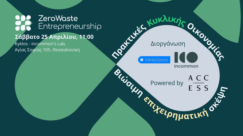 Το InfinityGreece και η incommon παρουσιάζουν για 3η συνεχή χρονιά το Zero Waste Entrepreneurship στη Θεσσαλονίκη, με την υποστήριξη της ACCESS Fashion και επίσημο Fashion Guest τον Όμιλο Σπουδών Μόδας PANSiK.