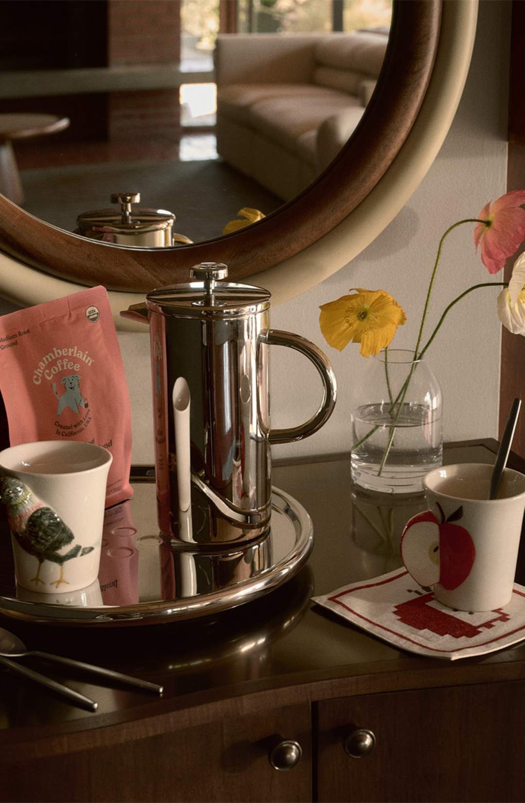 Η συλλογή, που αριθμεί περίπου 150 κομμάτια και σχεδιάστηκε σε συνεργασία με την εσωτερική δημιουργική ομάδα της εταιρείας, εστιάζει σε λύσεις για μικρούς χώρους, περιλαμβάνοντας έπιπλα, φωτιστικά και υφάσματα. Η έμπνευση προέρχεται από την αγάπη της Emma Chamberlain για vintage αντικείμενα και το mid-century modern design, στοιχεία που έχει συλλέξει με τα χρόνια.