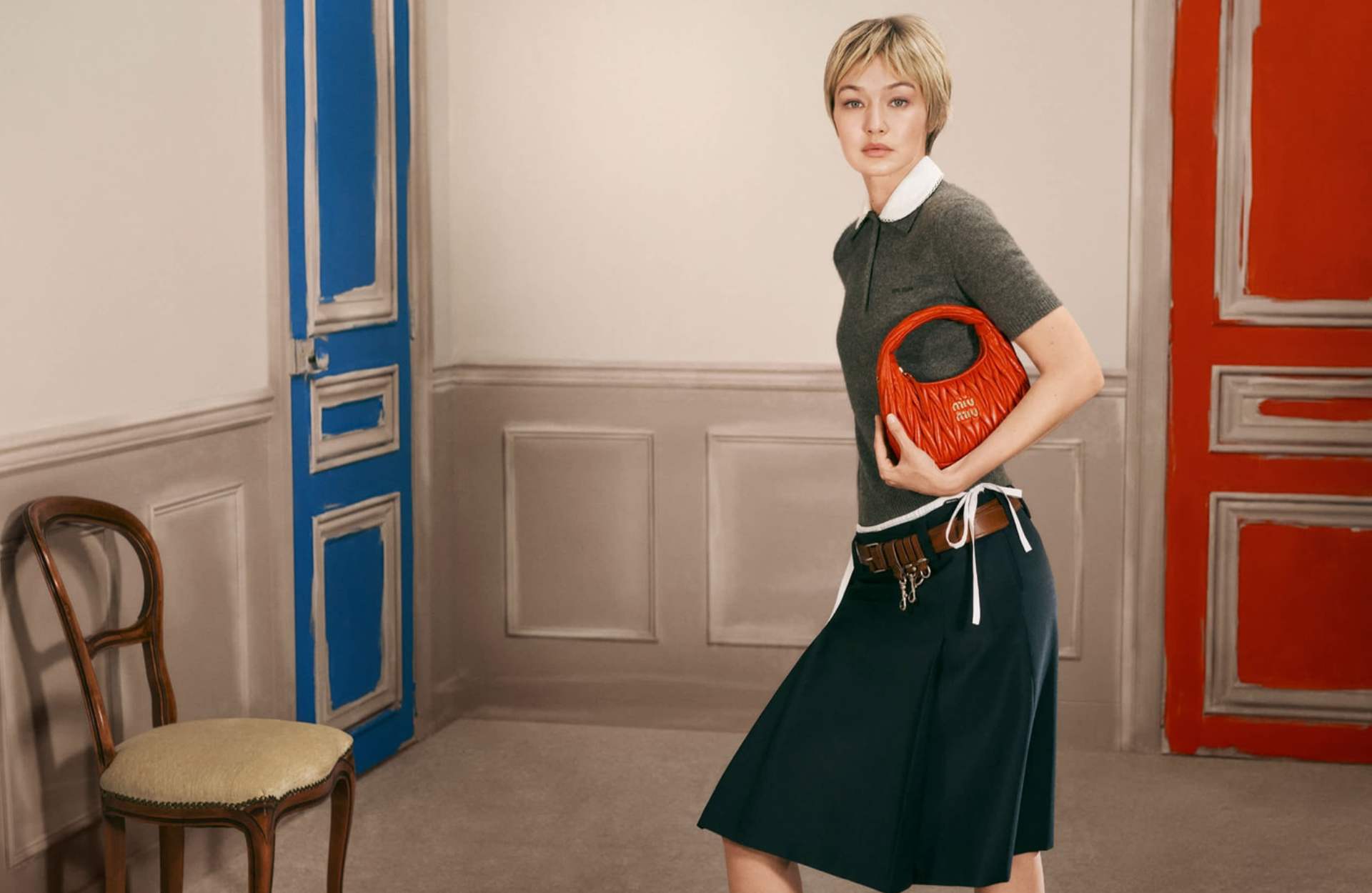 Η καμπάνια ξεχωρίζει για τη δυνατή αντίθεση ανάμεσα στο ουδέτερο περιβάλλον και τις έντονες πινελιές χρώματος. Μέσα σε έναν χώρο με λιτά έπιπλα και minimal διάθεση, αναδεικνύονται ζωηρά χρώματα, τα οποία «σπάνε» τη μονοτονία και δίνουν ένταση στο οπτικό αποτέλεσμα. Η Hadid εμφανίζεται με κομψά looks της Miu Miu, όπως cropped polo tops, πολύχρωμες φούστες και ανάλαφρα πλεκτά, έχοντας ως βασικά αξεσουάρ τις τσάντες της σεζόν.