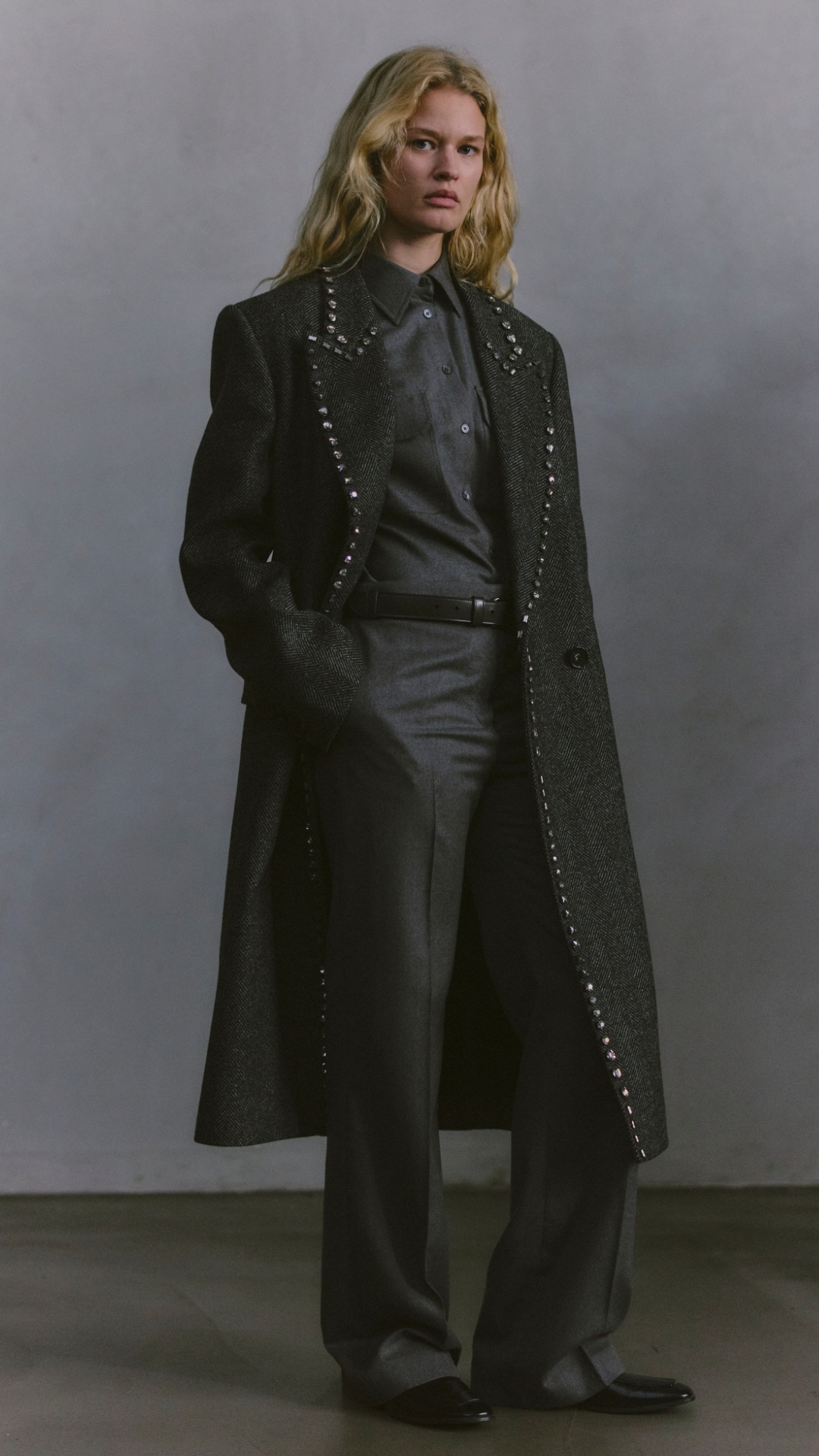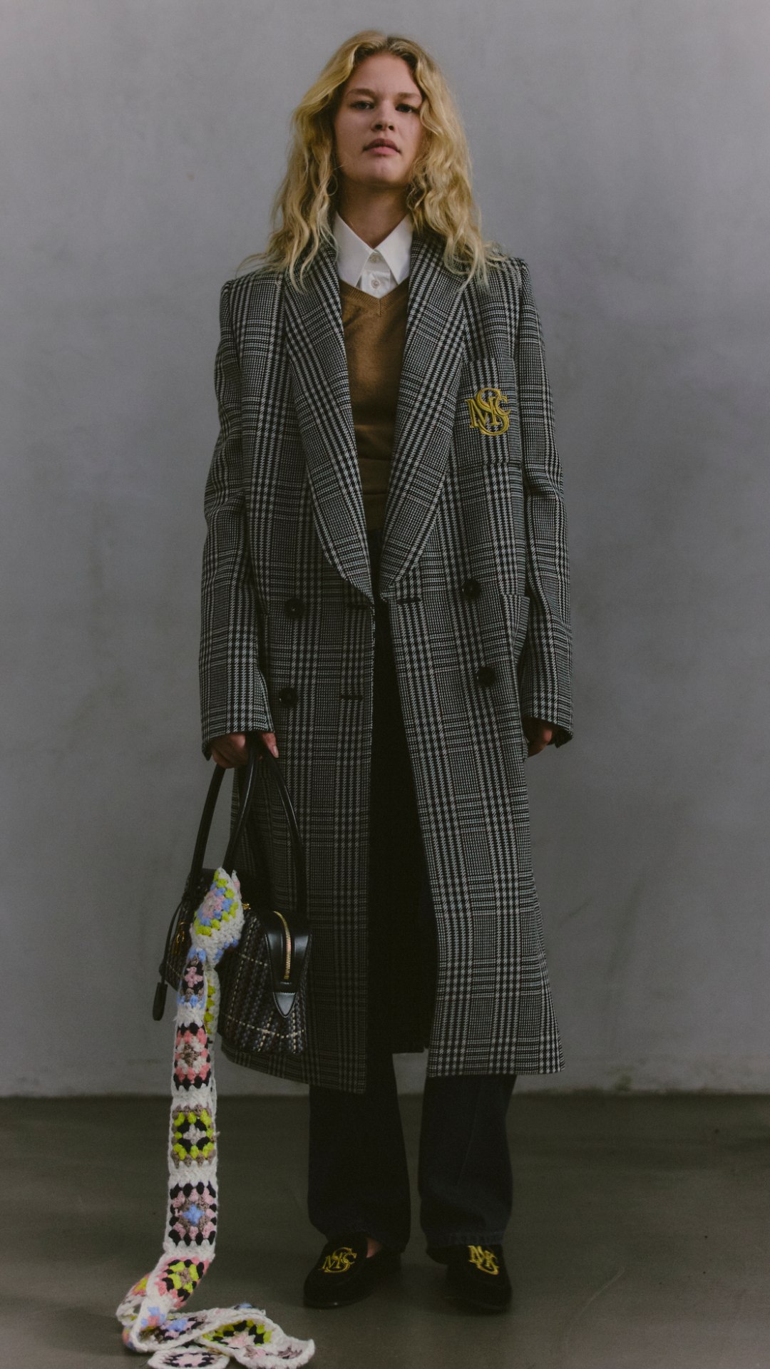 Η συλλογή περιλαμβάνει σακάκια με φαρδιούς ώμους και στενή μέση, μακρόστενα γιλέκα, σταυρωτά παλτό και τζιν. Πολλά από αυτά τα κομμάτια ήταν κεντημένα με ένα εποχιακό έμβλημα “SMC” σε χρυσή κλωστή, εμπνευσμένο από το σχέδιο σε ένα ζευγάρι παλιές παντόφλες του Paul McCartney. Η σχεδιάστρια συνδύασε τα σακάκια της με πιέτες, φαρδιά παντελόνια από υπεύθυνα προμηθευμένο μαλλί.