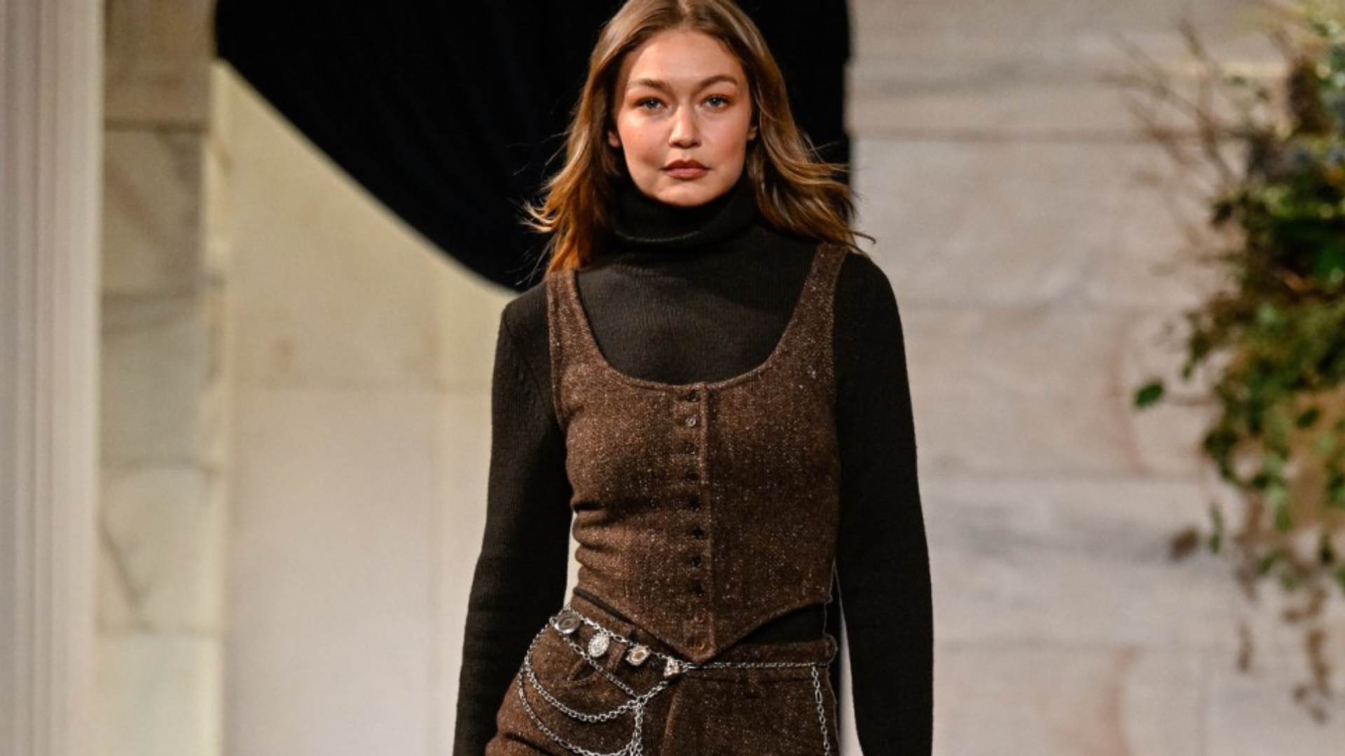 Η Gigi Hadid έκλεψε τις εντυπώσεις, τόσο ανοίγοντας το show με ένα μπουκλέ tweed κορσέ και ταγιέρ φούστα, όσο και κλείνοντάς το με μια καφέ βελούδινη τουαλέτα που δένει στον λαιμό (halter gown), με μια χοντρή δερμάτινη ζώνη στη μέση και μανίκια από αλυσιδωτό πλέγμα (chainmail). Τα looks ανέδειξαν τη συνολική δυαδικότητα της συλλογής: το τραχύ με το ρομαντικό, και το περιπετειώδες με το κλασικό, με έντονες vintage αναφορές και νύξεις στην Ιωάννα της Λωραίνης (ή όπως ακούστηκε ψιθυριστά στους διαδρόμους: «Η Ιωάννα της Park Avenue»).