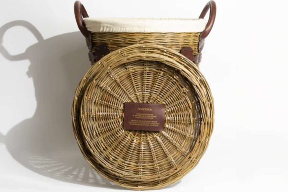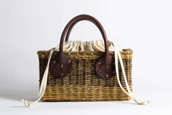 Η τσάντα λειτουργεί ως design artefact: κατασκευασμένη από βρετανική ιτιά, πλεγμένη εξ ολοκλήρου στο χέρι, και ολοκληρωμένη με φυτικά επεξεργασμένο δέρμα σε βαθιά σοκολατί απόχρωση, παραπέμπει σε παραδοσιακές τεχνικές αποθήκευσης. Η αισθητική της αντλεί έμπνευση από μεσαιωνικά μπαούλα, μεταφρασμένα σε ένα σύγχρονο, λειτουργικό αντικείμενο που ισορροπεί ανάμεσα στη γλυπτική μορφή και την πρακτικότητα.