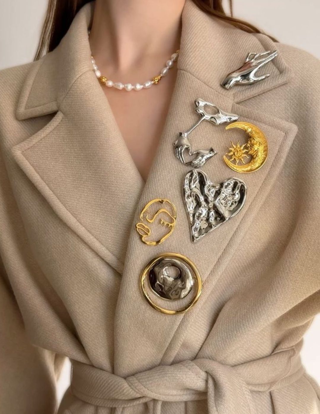 Η γοητεία τους βρίσκεται ακριβώς στην ελευθερία που προσφέρουν. Οι καρφίτσες φοριούνται μόνες τους ή σε «παρέες», πάνω σε παλτό, πλεκτά, φορέματα, ακόμη και σε τσάντες ή ζώνες. Άλλοτε λουλουδάτες και τρισδιάστατες, θυμίζοντας τις iconic floral καρφίτσες της Carrie Bradshaw, και άλλοτε αυστηρές ή vintage, προσαρμόζονται σε κάθε στιλ και διάθεση.