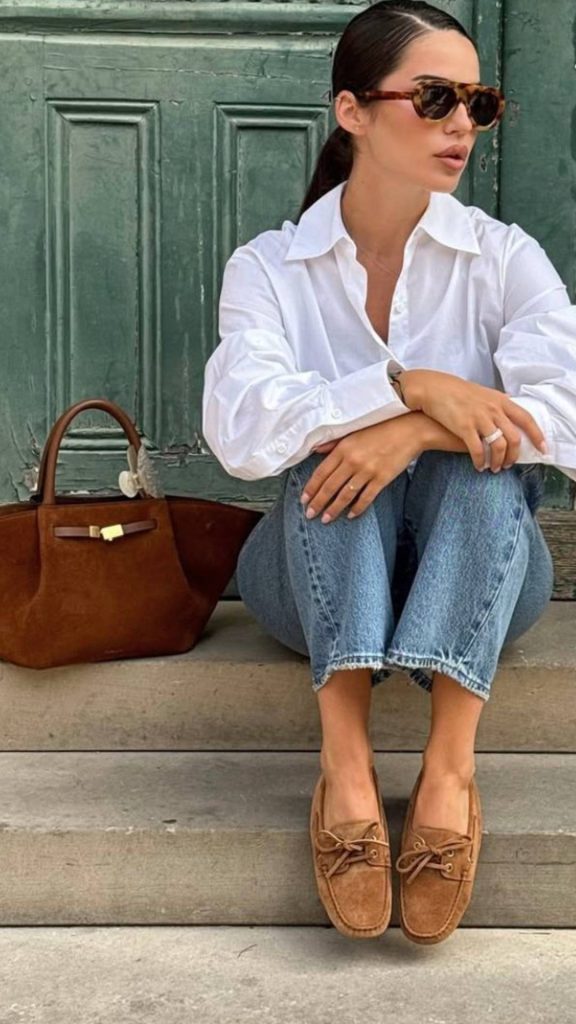 Ένα straight-leg ή cropped jean αναδεικνύει τέλεια τα loafers. Πρόσθεσε ένα t-shirt ή ένα blazer και έχεις ένα σύνολο που δείχνει προσεγμένο χωρίς προσπάθεια.