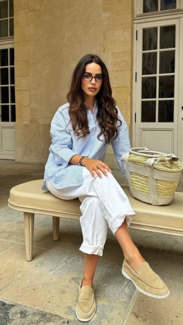 Συνδύασε τα loafers σου με ένα καλοραμμένο παντελόνι σε ίσια γραμμή και ένα ελαφρύ πουκάμισο. Το αποτέλεσμα είναι κομψό αλλά και χαλαρό – ιδανικό για επαγγελματικές εμφανίσεις χωρίς υπερβολή.