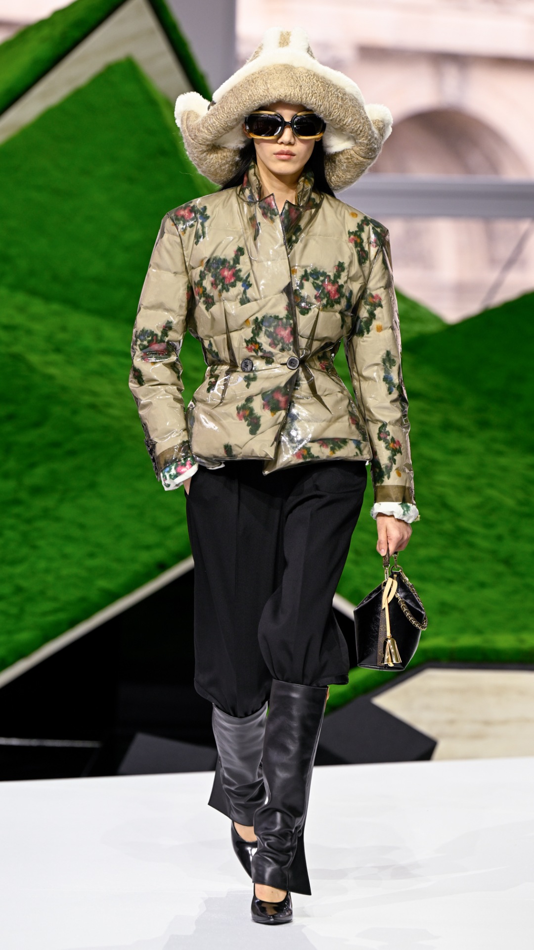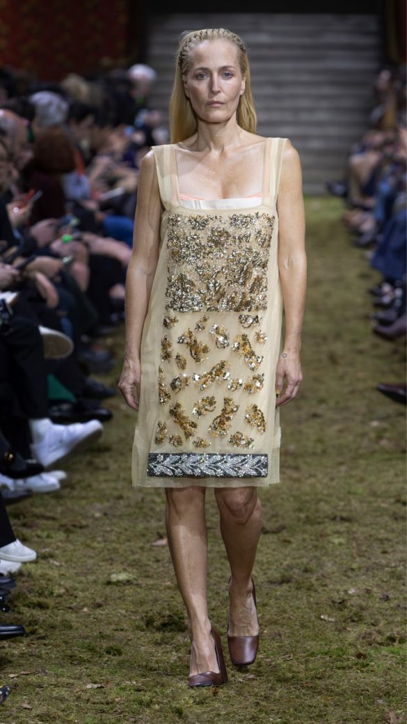 Λίγες ώρες αργότερα, ο κόσμος της μόδας μεταφέρθηκε στην επίδειξη της Miu Miu. Και, ω του θαύματος, η πασαρέλα της θύμιζε το έδαφος ενός δάσους, διακοσμημένο με κλαδιά και τούφες από βρύα. Έτσι, ο Vuitton ήταν επίσης εντός τάσης με τη χρήση των βρύων, τα οποία είδαμε επίσης στον Hermès και στον Gucci, αν συνυπολογίσουμε την Kate Moss.