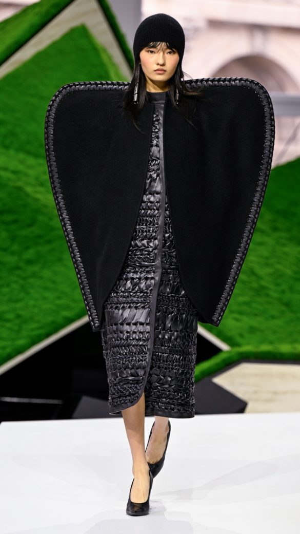 Τα ιδιαίτερα στυλ περιλάμβαναν patchwork ολόσωμες φόρμες (rompers), κωνικά καπέλα και δύσκαμπτες κάπες με πολύ φαρδείς ώμους. Τελικά όμως, η επίδειξη εντυπωσίασε με την ποικιλία των σιλουετών – από κολλητές φόρμες που θυμίζουν ισοθερμικά και κοντά δερμάτινα τζάκετ μέχρι κάπες βροχής που μοιάζουν με περιτυλίγματα καραμέλας και τον πλούτο των υφών.