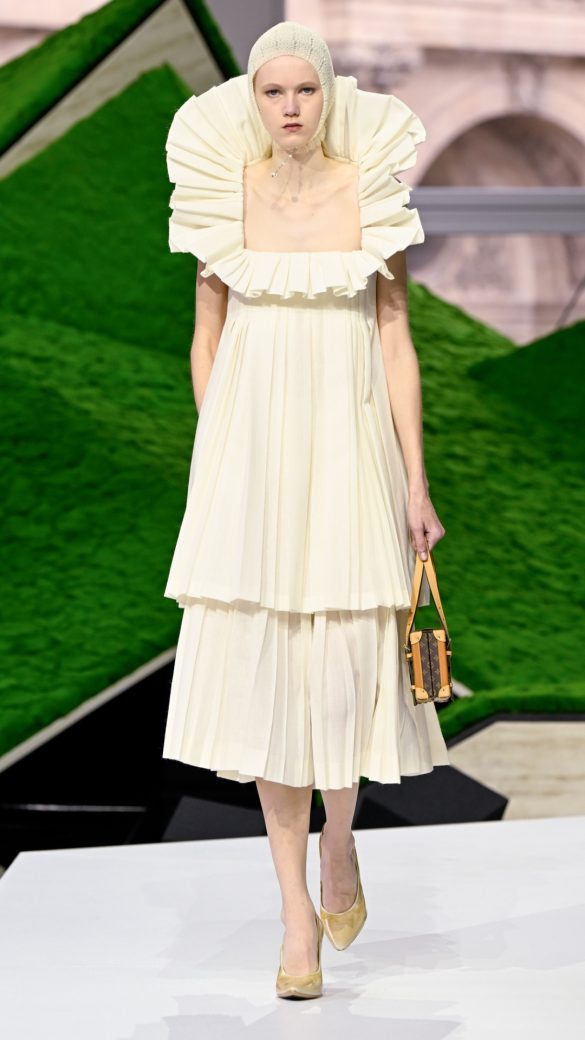 Οι δύο μεγάλοι οίκοι δεν έχασαν το momentum και εισήγαγαν και ένα «πράσινο» στοιχείο στο σκηνικό τους, μετά τους καλυμμένους με βρύα λόφους στους οίκους Hermès και Louis Vuitton, και την τεχνητή λίμνη με νούφαρα του Dior. Κατά κάποιο τρόπο, αυτή η επιλογή αναγνώστηκε από τους ειδικούς της μόδας ως επίκληση ενός δεσμού με τη φύση και σύνδεση με το «χαώδες τοπίο» της τρέχουσας συγκυρίας