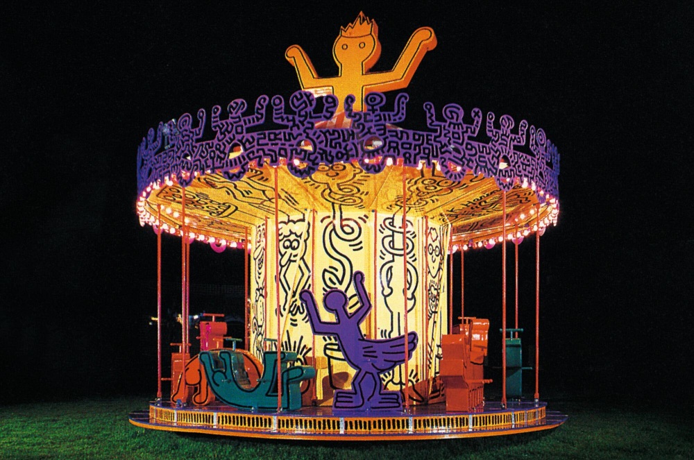 Το κοινό θα ενθουσιαστεί με τον τεράστιο τροχό λούνα παρκ που σχεδίασε ο Jean-Michel Basquiat και ένα γαϊτανάκι από τον σύγχρονό του, Keith Haring. Στο πρώτο, ένας φωτεινός περιστρεφόμενος τροχός προβάλλει έργα ζωγραφισμένα από τον καλλιτέχνη,.που αφηγούνται τους μύθους και τις ονειροπολήσεις του και συνοδεύεται από μουσική του Miles Davis. Στο τελευταίο έργο τέχνης, ο Haring μέσα από την πρωτόγονη ερμηνεία του.δημιουργεί μια ρυθμική σειρά από φιγούρες, που ζωντανεύουν καθώς το καρουζέλ περιστρέφεται.
