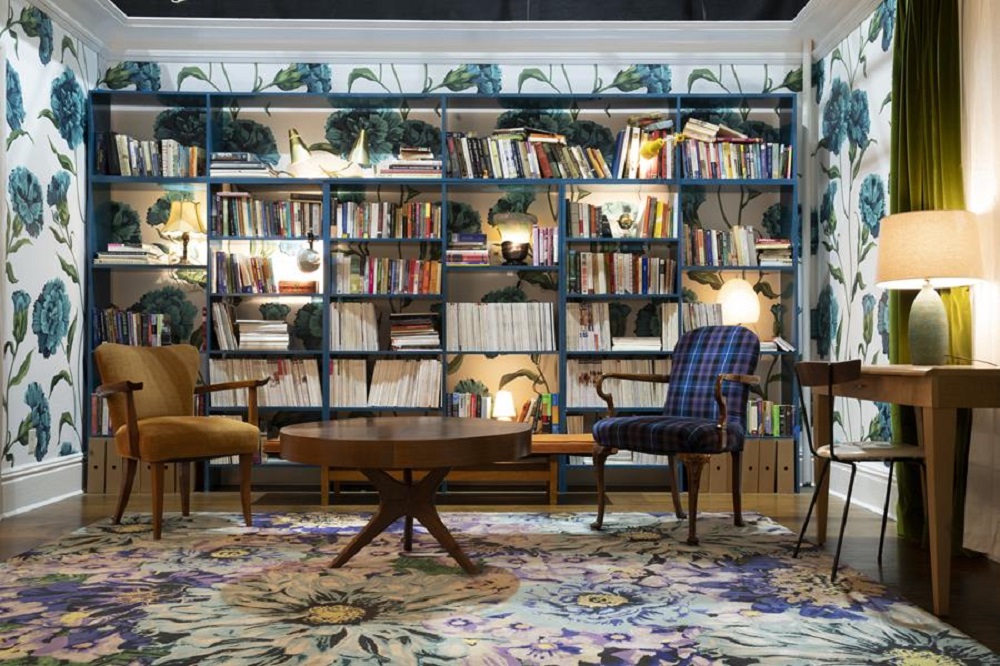 Το Bluebell Daydream “έδεσε” άψογα με την υπέροχη floral ταπετσαρία, τη γαλλικής αισθητικής βιβλιοθήκη και τα bold υφάσματα των επίπλων.