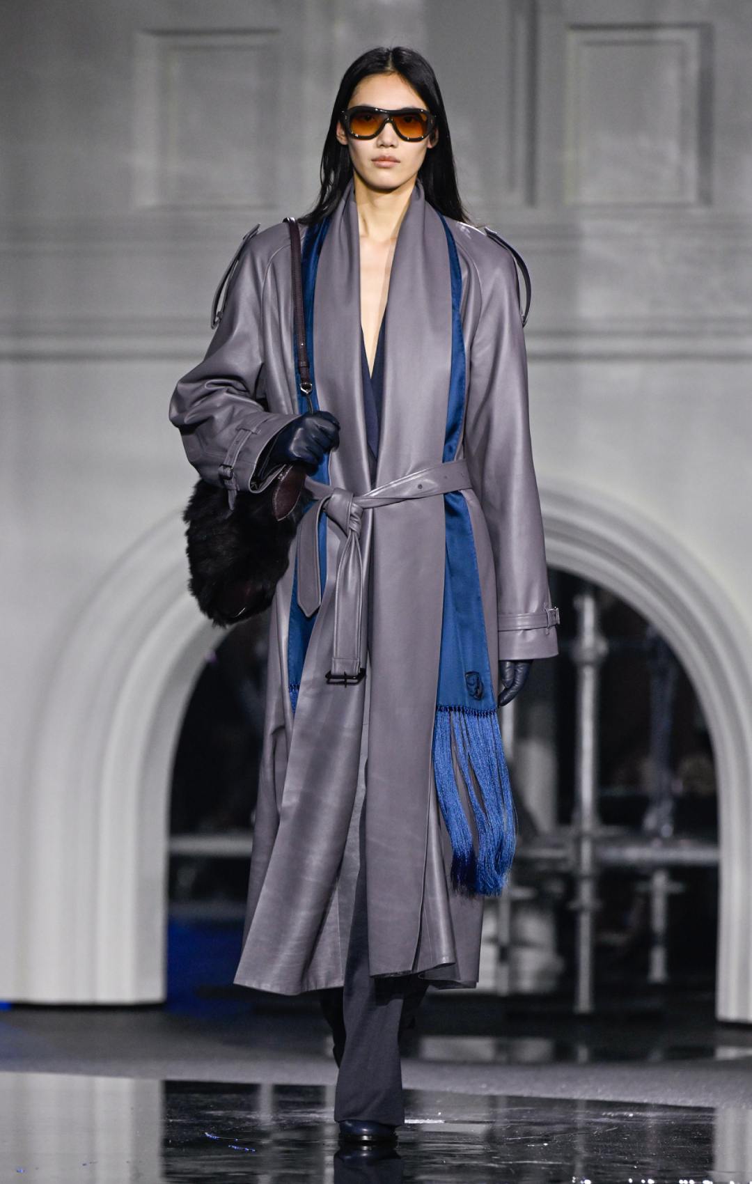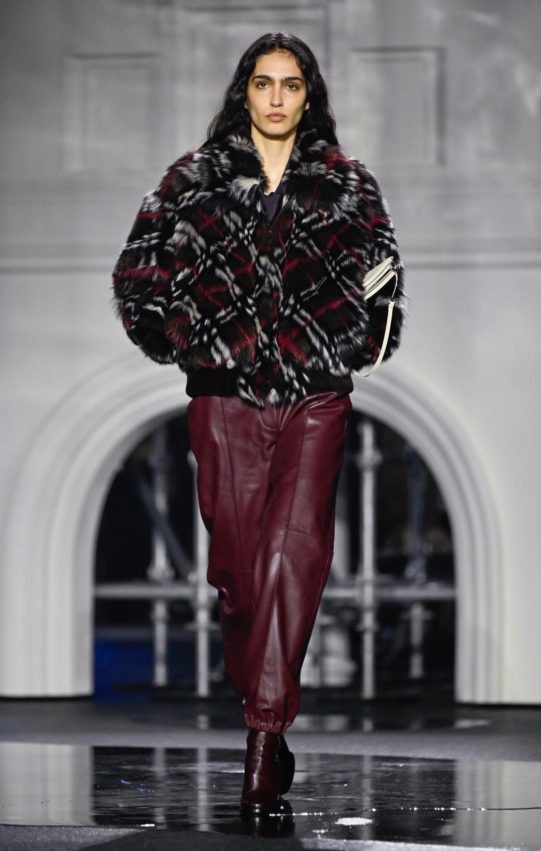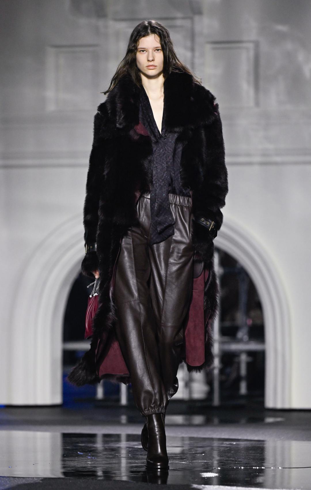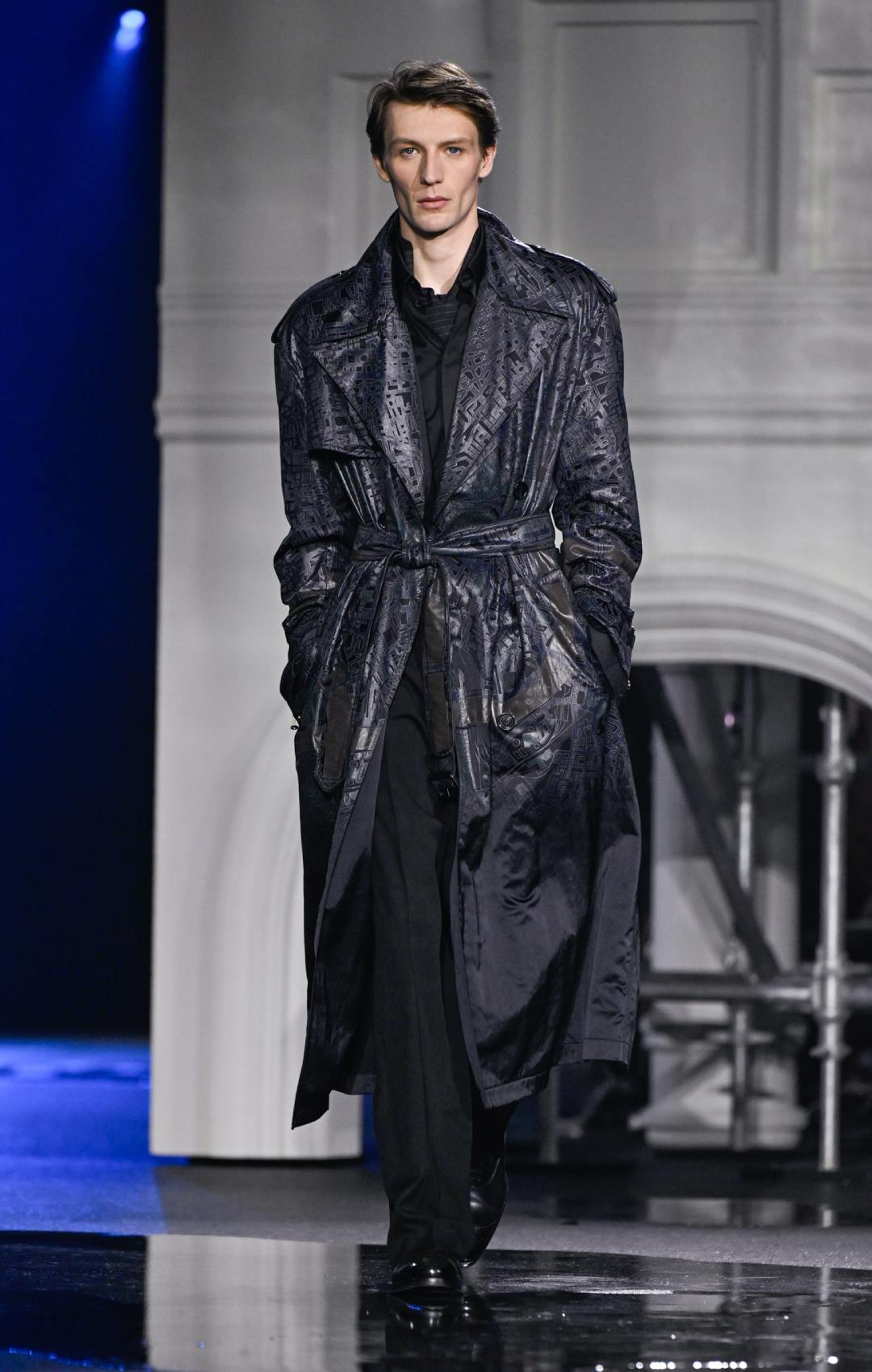 Πέρα από τις καμπαρντίνες, η συλλογή περιλάμβανε πολυτελή δερμάτινα κομμάτια – κιλτ, bomber jackets και εφαρμοστά παντελόνια – καθώς και αυστηρά μάλλινα παλτό με δερμάτινα πέτα ή όρθιους γιακάδες που παρέπεμπαν σε στρατιωτικές επιρροές. Η παλέτα κινήθηκε σε γήινους, χειμωνιάτικους τόνους, ενισχύοντας την αίσθηση πρακτικότητας και ανθεκτικότητας.