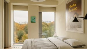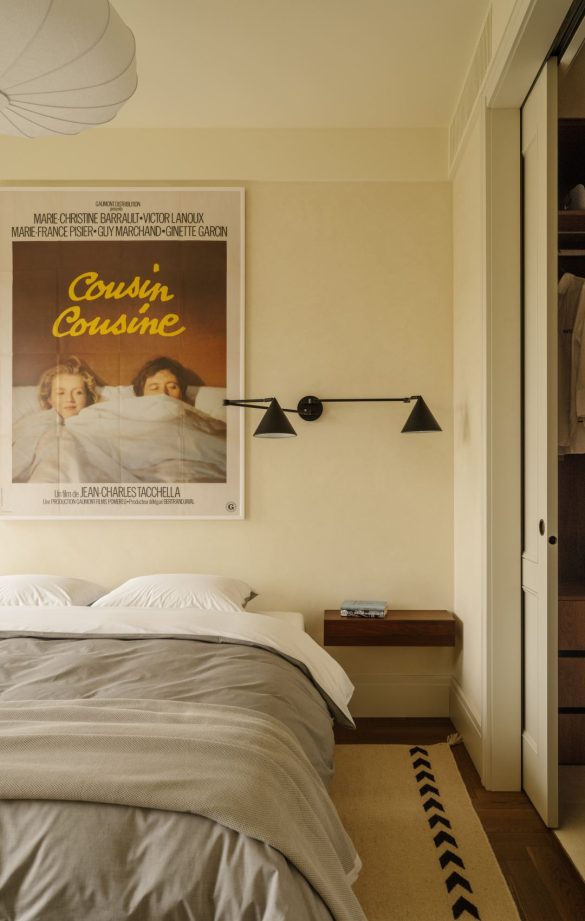 Στο υπνοδωμάτιο, η αίσθηση ηρεμίας είναι κυρίαρχη. Το κρεβάτι ντύνεται με στρώσεις υφασμάτων σε ουδέτερους τόνους, ενώ ο φωτισμός είναι διακριτικός και λειτουργικός, θυμίζοντας μικρά ευρωπαϊκά διαμερίσματα όπου κάθε λεπτομέρεια έχει λόγο ύπαρξης. Οι εντοιχισμένες λύσεις και τα λιτά κομοδίνα ενισχύουν την αίσθηση πρακτικότητας χωρίς να θυσιάζεται η αισθητική.