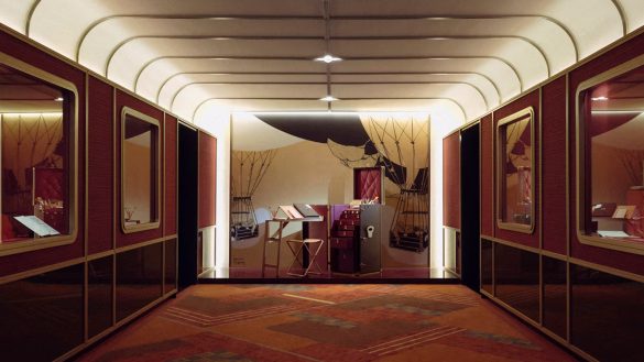 Το βαγόνι-αντίκα: Σε μια άλλη αίθουσα, που καταλαμβάνεται από ένα βαγόνι τρένου εποχής, σπάνια αντικείμενα – συμπεριλαμβανομένων των παλαιότερων μπαούλων και αξεσουάρ ταξιδιού της Louis Vuitton – συνομιλούν με τη νέα συλλογή Objets Nomades.